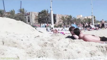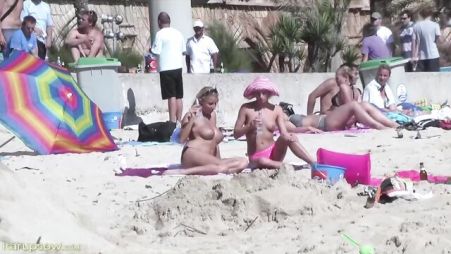 Блондинка на пляж пришла, чтобы прогреть свои прелести и просто расслабиться. На этом пляже она решила загорать с голыми сиськами, чем привлекла внимание многих. Тут же она нашла себе единомышленницу на пляже, с которой у нее было много общего. Девушки не просто познакомились, а даже приятно время провели. Блондинка свои большие дойки дала потрогать новой подруге, и получала невероятное удовольствие от ее ласк. Девушки просто развлекались, не обращая внимание на всех вокруг на пляже.