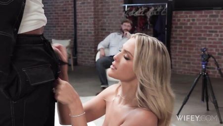 Очаровательная блондинка не просто решилась на измену, а решила это сделать прямо на глазах у своего жениха. А тот просто со стороны наблюдал за тем, как его очаровательная невеста веселиться с другим и балдеет от его члена. Красотка с аккуратными сиськами умело взялась за член мужика и крутой минет ему сделала. А вот ее жених не просто за изменой наблюдал, но даже решил все на видео снять. А блондинка с гладкой киской только и делала, что стонала и удовольствие во время измены получала.