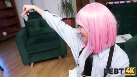 Эта девушка каждый раз устраивала приятные сюрпризы для своего ухажера. Он был скромным парнем и не всегда мог инициативу проявить. А вот девица была еще той затейницей, которая любит устраивать жаркие ролевые игры. Сегодня она была на каблуках и в розовом парике, словно секретарша. А вот ее приятель исполнял роль уставшего босса, которому она поможет расслабиться и удовольствие подарит. Девица в розовом парике сделала ему отличный минет и раком встала перед ним на диване, чтобы он ее скорее потрахал.