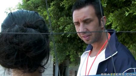 Тренер нравился многим спортивным девушкам, но вот только он на них никакого внимания не обращал. А тут она брюнетка решила его после тренировки очаровать, и у нее это реально получилось. Просто она оголила свои большие дойки и мужик реально перед таким великолепием устоять не смог. Грудастая брюнетка его соблазнила прямо на площадке, на свежем воздухе и они там же отлично провели время. Грудастая девица крутой минет сделала тренеру и скорее похотливую пилотку для проникновения подставила.