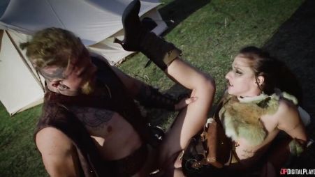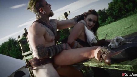 Блондинка была настоящим бойцом, но все равно уступила этому сильному и брутальному мужчине. Она проиграла в бою и теперь была готова подчиняться ему, выполнять любой его приказ или желание. А какое может быть желание у мужчины рядом с такой горячей сучкой? Конечно, только секс! Вот девица и принялась его мощный ствол радовать отличным минетом. Она сосала настолько круто, что он разгорячился до самого предела. А потом разгоряченная парочка устроила незабываемый секс на зеленой полянке.