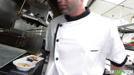 Молодая девушка только устроилась на работу в ресторан. Теперь ей предстоит работать помощницей под чутким руководством поваров. Поскольку ее коллеги захотели отметить ее первый рабочий день, то устроили девушке такой приятный сюрприз, который она точно не забудет никогда. Парни-повара с трех сторон принялись милашку ласкать и устроили с ней первоклассную групповушку прямо на кухне. Девица с упругой попкой даже неожидала, что получит двойное проникновение от коллег и такое удовольствие.