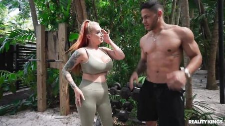 Милфа с большими дойками знала толк в спорте и могла дать дельный совет. А сегодня накаченный парень попросил ее помочь во время его тренировки. На свежем воздухе вместе они такую секс-тренировку устроили, что были в восторге оба. Опытная сучка с большими дойками сделала отличный минет накаченному парню, чтобы настроить его на секс-тренировку. Когда грудастая пососала ствол и сняла свои лосины, то сразу верхом на крепком члене оказалась и начала кайфовать в позе наездницы со стонами.