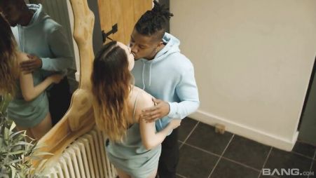 Она просилась сегодня пойти погулять вместе с друзьями, чтобы не скучать дома, а развлечься. Но у темнокожего была отличная идея, как можно вместе дома провести и при этом совершенно не скучать. Просто он точно знал, как можно порадовать свою подружку с маленькими сиськами и подарить ей яркое удовольствие. Для начала это нежные поцелуи, а потом уже его большой член в ее ротике. Девица с наслаждением негру сделала минет, а потом стала такое удовольствие получать от проникновения, что ей уже совершенно никуда не хотелось идти.