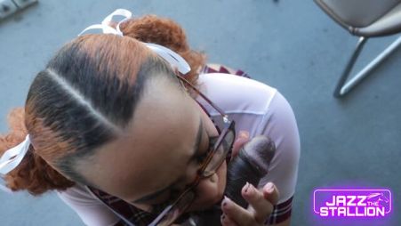 С недавних пор у рыжеволосой мулатки приятель появился, который все хотел с ней поближе познакомиться. В итоге, когда она с учебы ушла пораньше, то состоялось из близкое знакомство. И оно было настолько близким, что его черный член у нее в ротике оказался. Вот тут мулатка не растерялась и скорее сосать начала. Своего нового приятеля она отличным минетом порадовала. Но на этом приключения не закончились, и это было всего лишь началось. Жопастая мулатка крепкий ствол негра в пилотку получила и стонать начала.